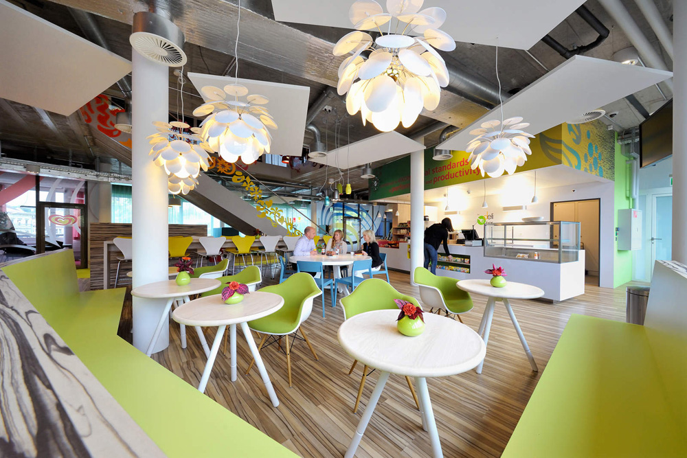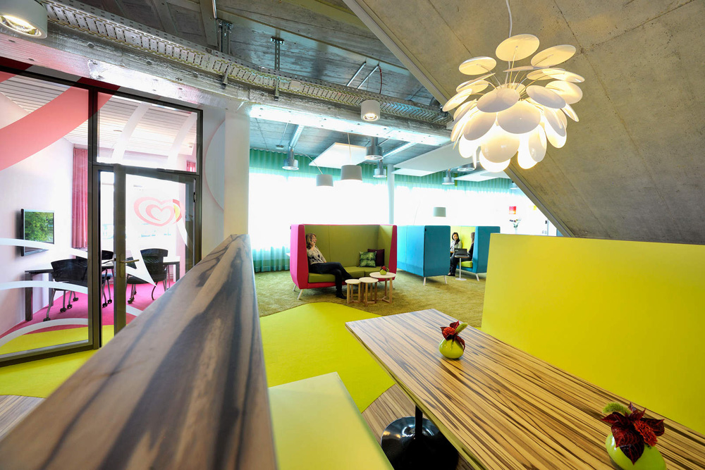 位于瑞士的聯(lián)合利華辦公室,就像天朝的兒童樂園,完全是大小孩理想中的夢(mèng)想空間。色彩的明麗跳躍與碰撞讓人全然忘乎這是個(gè)本該嚴(yán)肅莊重的辦公環(huán)境。
