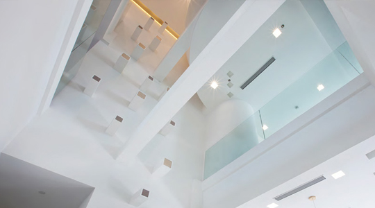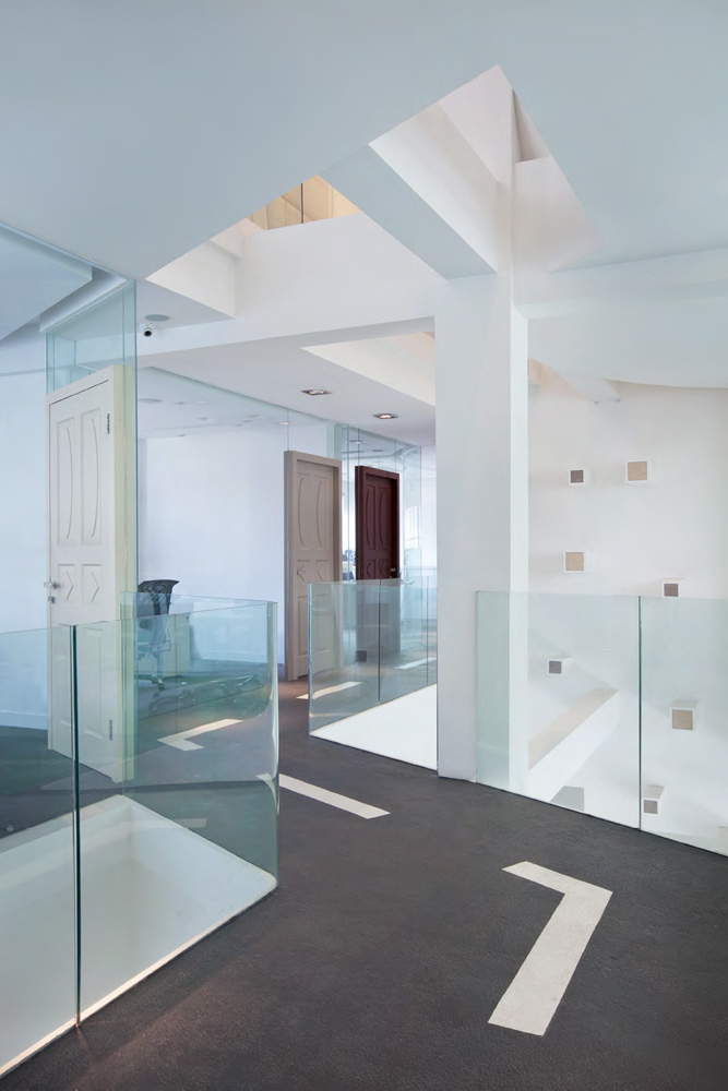 這種開(kāi)放性的建筑結(jié)構(gòu)一改原先大樓結(jié)構(gòu)的弊端,使得辦公室的采光更加明亮并且加大了空間感。為了體現(xiàn)客戶開(kāi)放性的要求,在重塑結(jié)構(gòu)時(shí),設(shè)計(jì)師特別將中庭打造成一個(gè)挑空開(kāi)放的區(qū)域,不論位于哪一樓,都能方便的與每一樓層的同事溝通,并且采用長(zhǎng)型白色鋼琴漆辦公桌,即滿足了友好的工作氛圍需求又便于員工之間的交流。