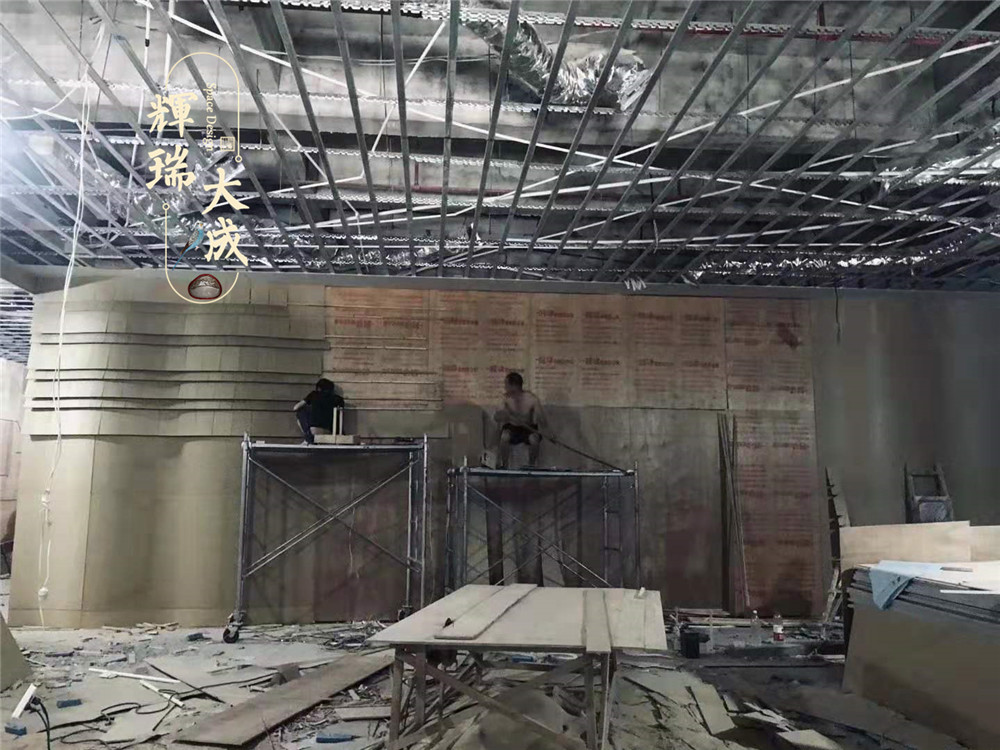 炎炎夏日,輝瑞大成KTV設(shè)計師去貴州視察工地,順便還可感受不一樣的風(fēng)土人情,每次去,客戶都十分熱情的招待設(shè)計師,感謝每一位客戶的信任和熱情。項目兩千多平方,投資額也比較大,目標(biāo)是做地方標(biāo)桿,看著已初現(xiàn)面貌的背景墻,一層一層的層板向上疊加,已能感受到高檔大氣的感覺。