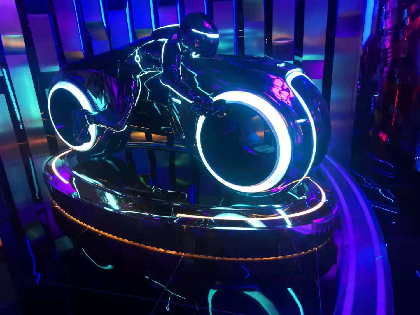2、摩托:男士最喜歡的道具,炫酷科技,燈帶線條奪目,有的還帶VR游戲,帶上眼鏡,騎上摩托,就可以感覺體驗(yàn)一番。