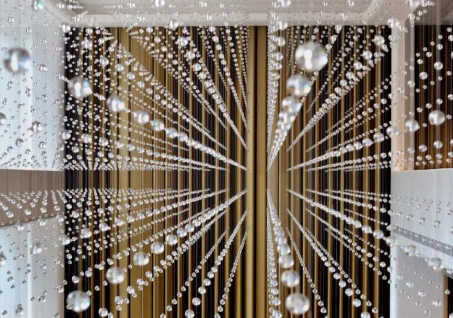 二、“水”的運(yùn)用,以水為主題,水的意境,水影、水滴、水泡、波瀾起伏的水浪背景與客人形成內(nèi)心深處情感的連結(jié)。用色方面,遵循傳統(tǒng)五行文化的“黑為水”邏輯,拒絕膚淺的裝飾手法。所有用材、用色、用光都以此為目標(biāo)。設(shè)計(jì)手法不迎合潮流和趨勢。通過主要材料:爵士白石材、皇家啡石材、古銅板、古銅拉絲、水晶、演譯一場“水”的故事,水往往有好的向往和含義。