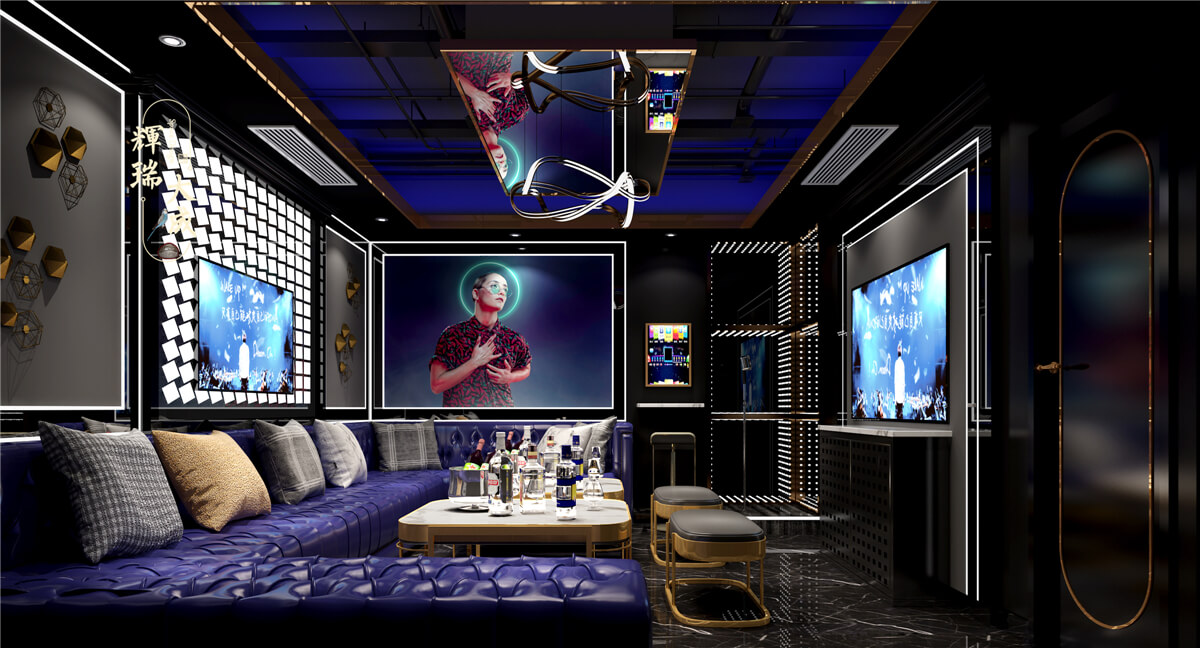 對于小投資的KTV包房來說,一個時尚前衛(wèi)的墻畫將是點睛之筆,且投資低,效果好,加上玫瑰金等加以裝飾更顯特色輕奢。包房中加入消聲墻面的設計,能夠有效減小話筒的嘯叫,還要注意墻面的比例設計,否則過強的吸引效果會引起聲音的干涉,造成話筒的混響不足,影響大家的演唱效果和整個KTV的服務感受。