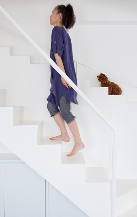 如果你家里也養(yǎng)寵物,或許這個設(shè)計能更吸引你。設(shè)計師07Beach為他的朋友量身打造了這款人寵雙用樓梯,更小的跨度和間距,更多的考慮了小型犬使用樓梯時的骨骼舒適性。當(dāng)然,前提是你得訓(xùn)練好你的狗狗走這條道,不然可就白費(fèi)心思了。